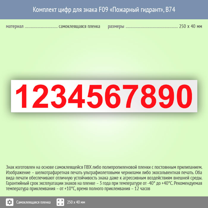Комплект цифр для знака F09 «Пожарный гидрант», В74