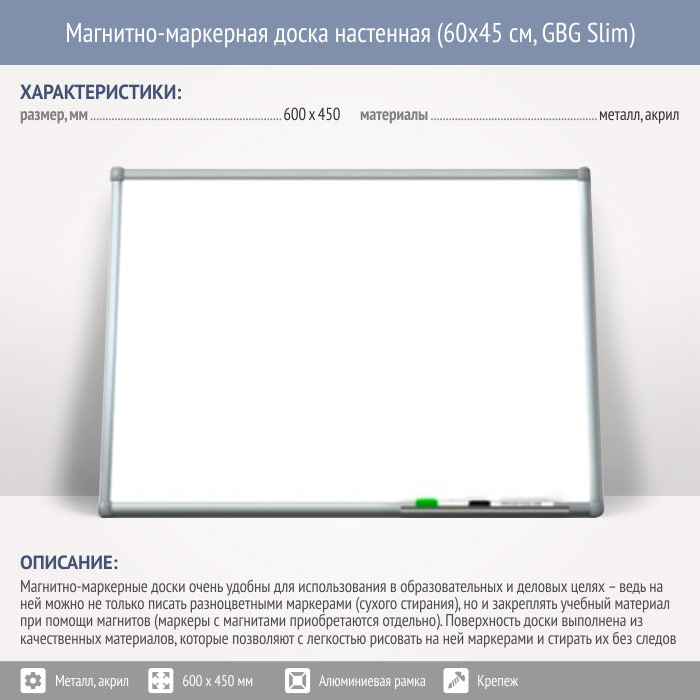 Магнитно-маркерная доска настенная (60x45 см, GBG Slim) в Краснодаре купить