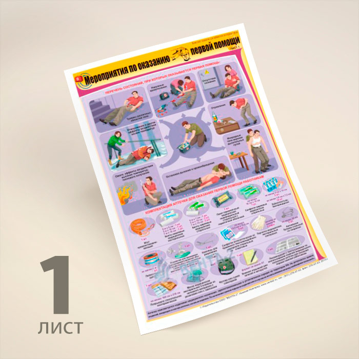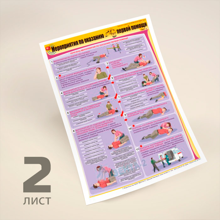 Плакаты «Мероприятия по оказанию первой помощи» (В-09, ламинированная бумага, А2, 2 листа) в Краснодаре купить