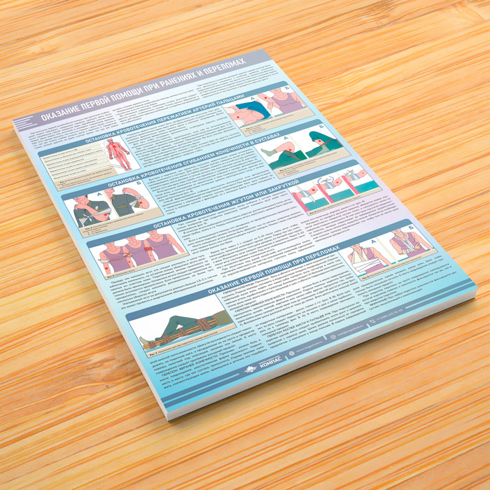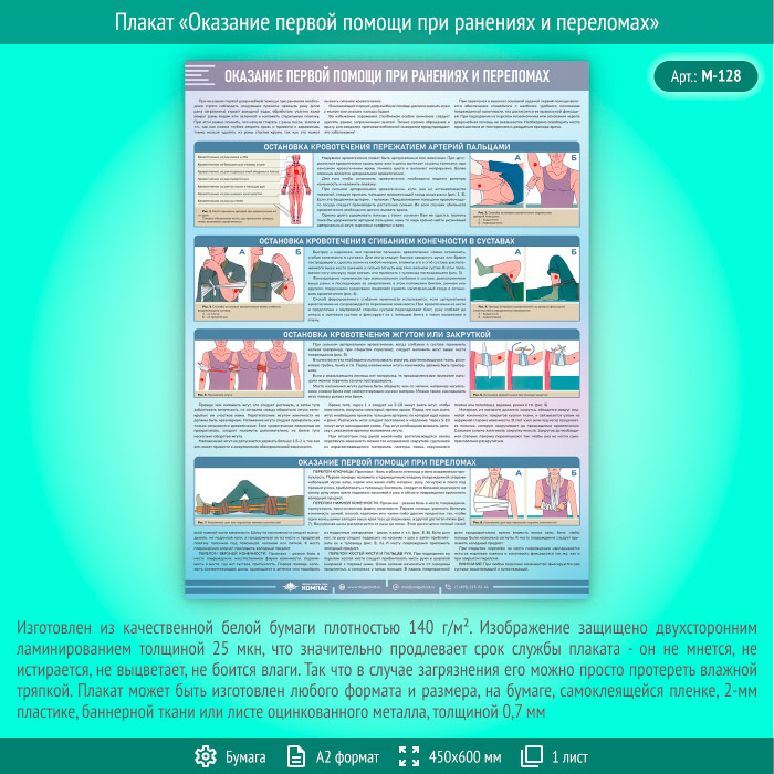 Плакат «Оказание первой помощи при ранениях и переломах» (М-128, ламинированная бумага, А2, 1 лист) в Краснодаре купить