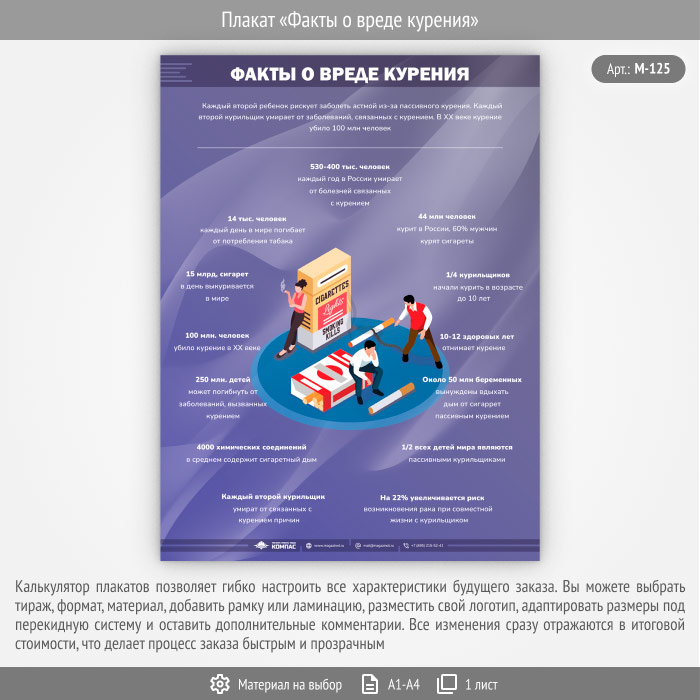 Плакат «Факты о вреде курения» (М-125, 1 лист) в Краснодаре купить