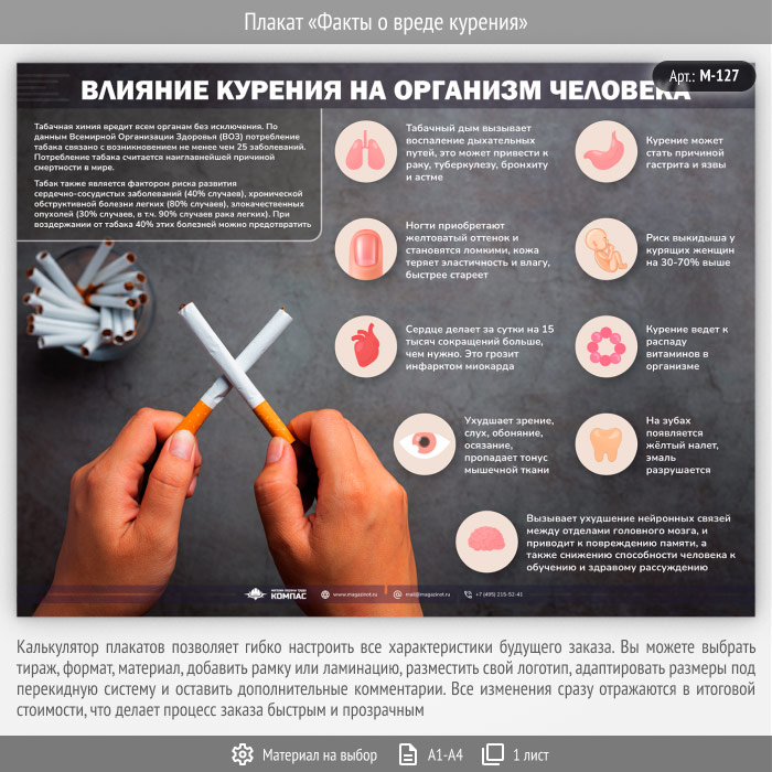 Плакат «Факты о вреде курения» (М-127, 1 лист) в Краснодаре купить
