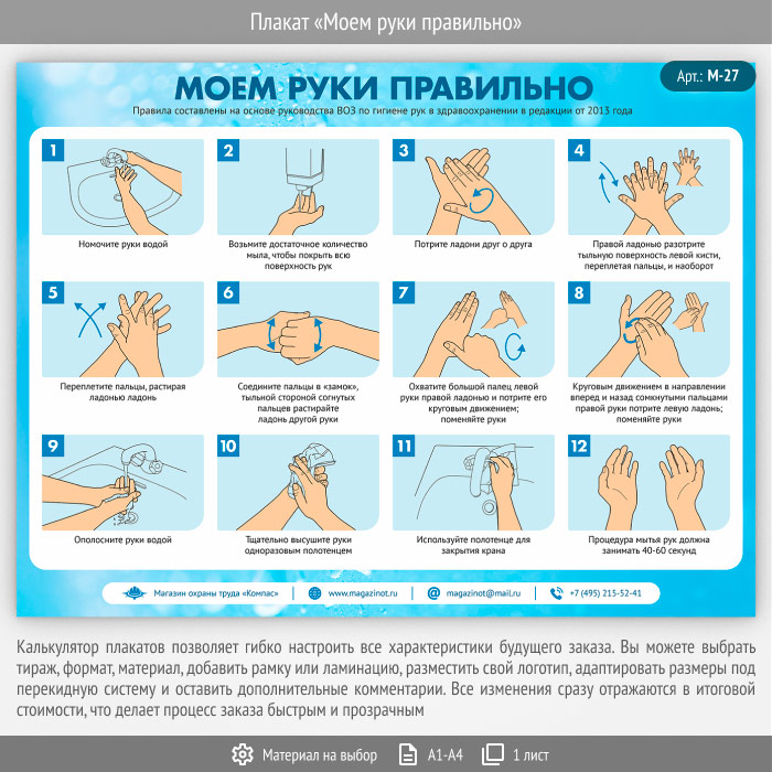 Плакат «Моем руки правильно» (М-27, 1 лист) в Краснодаре купить