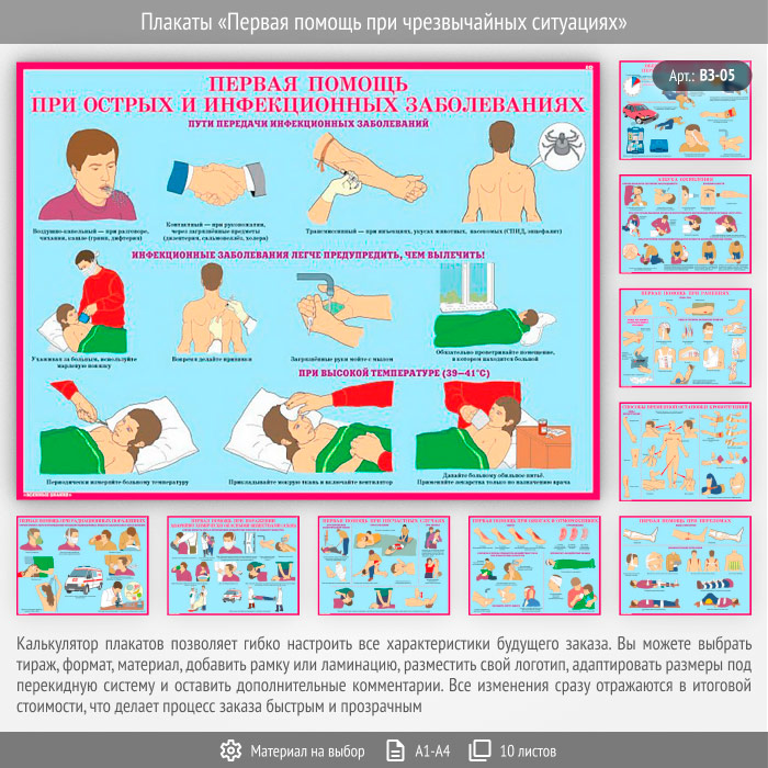 Плакаты «Первая помощь при чрезвычайных ситуациях» (ВЗ-05, 10 листов) в Краснодаре купить