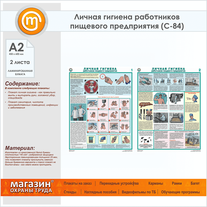 Плакаты «Личная гигиена работников пищевого предприятия» (С-84, ламинированная бумага, А2, 2 листа) в Краснодаре купить