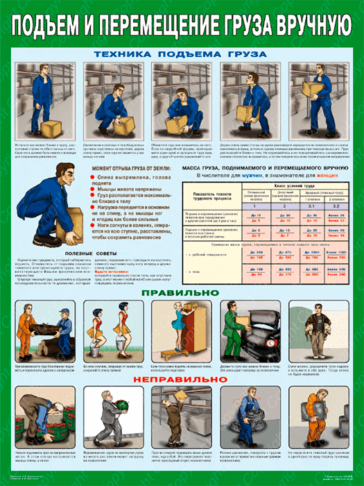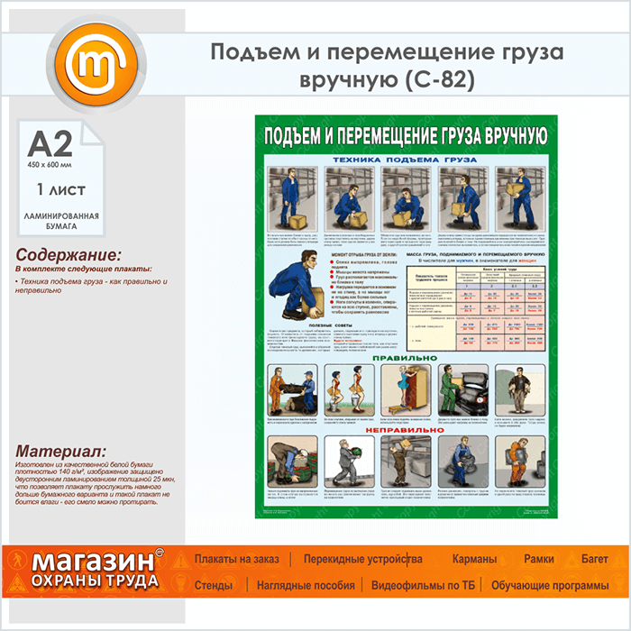 Плакат «Правила перемещения грузов вручную» (С-82, ламинированная бумага, А2, 1 лист) в Краснодаре купить