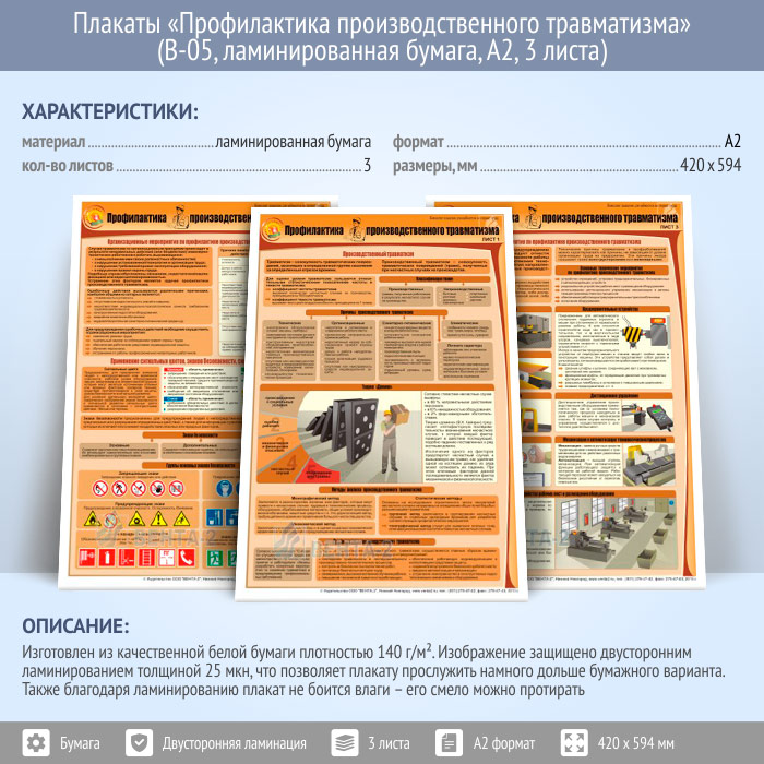 Плакаты «Профилактика производственного травматизма» (В-05, ламинированная бумага, А2, 3 листа) в Краснодаре купить