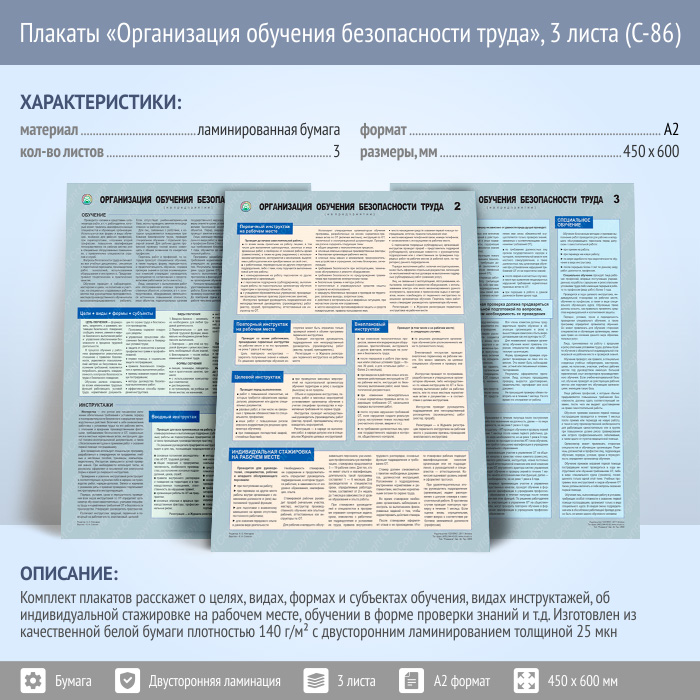 Плакаты «Организация обучения безопасности труда» (С-86, ламинированная бумага, А2, 3 листа) в Краснодаре купить