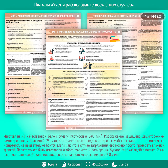 Плакаты «Учет и расследование несчастных случаев» (М-09.2, ламинированная бумага, А2, 3 листа) в Краснодаре купить