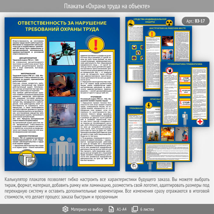Плакаты «Охрана труда на объекте» (ВЗ-17, 6 листов) в Краснодаре купить