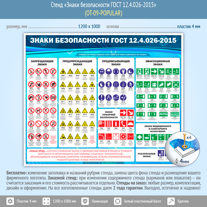 Стенд «Знаки безопасности ГОСТ 12.4.026-2015» (OT-09-POPULAR) в Краснодаре купить