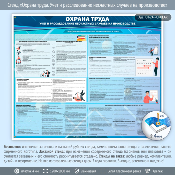 Стенд «Охрана труда. Учет и расследование несчастных случаев на производстве» (OT-24-POPULAR) в Краснодаре купить