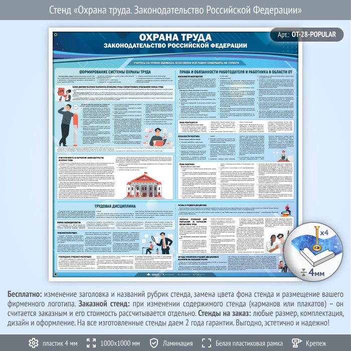 Стенд «Охрана труда. Законодательство Российской Федерации» (OT-28-POPULAR) в Краснодаре купить