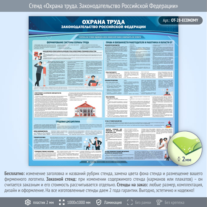 Стенд «Охрана труда. Законодательство Российской Федерации» (OT-28-ECONOMY) в Краснодаре купить