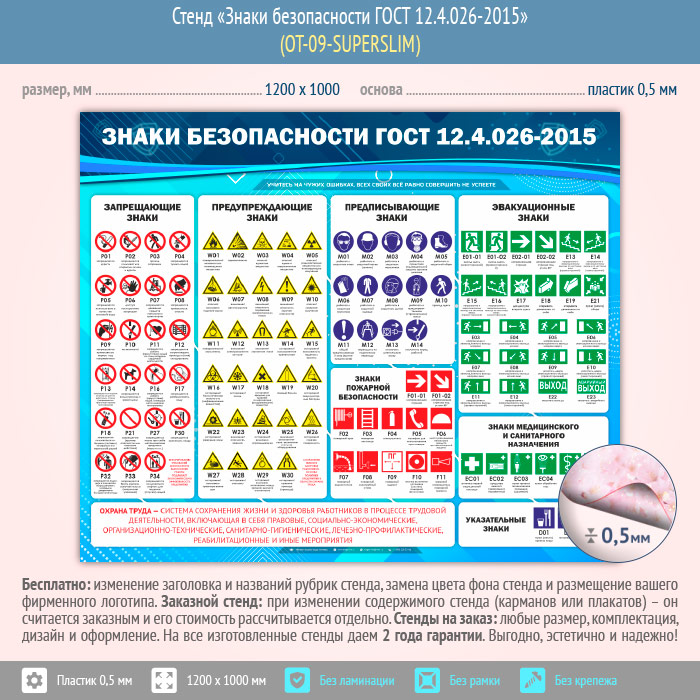 Стенд «Знаки безопасности ГОСТ 12.4.026-2015» (OT-09-SUPERSLIM) в Краснодаре купить