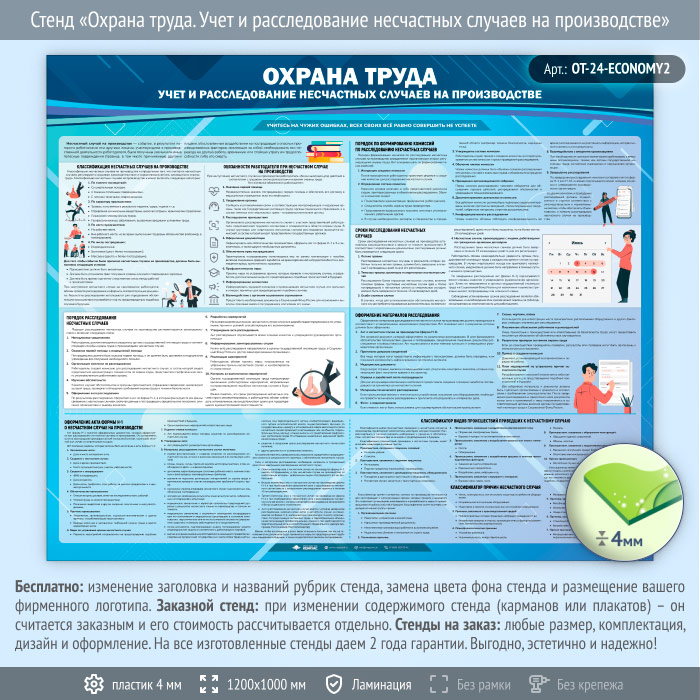 Стенд «Охрана труда. Учет и расследование несчастных случаев на производстве» (OT-24-ECONOMY2) в Краснодаре купить
