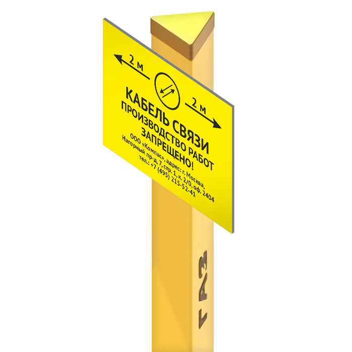 Столбик треугольный желтый h=1800 мм (сторона 130 мм) в Краснодаре купить