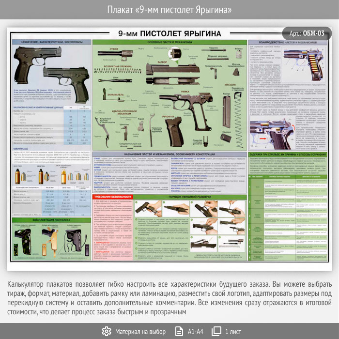 Плакат «9-мм пистолет Ярыгина» (ОБЖ-03, 1 лист) в Краснодаре купить