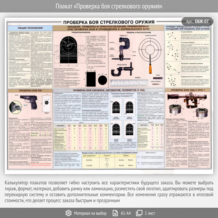 Плакат «Проверка боя стрелкового оружия» (ОБЖ-07, 1 лист) в Краснодаре купить