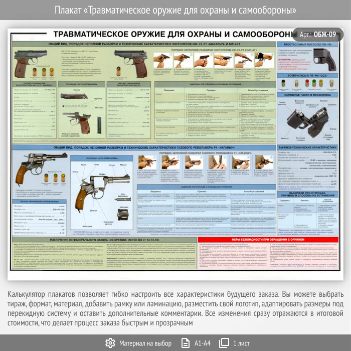 Плакат «Травматическое оружие для охраны и самообороны» (ОБЖ-09, 1 лист) в Краснодаре купить