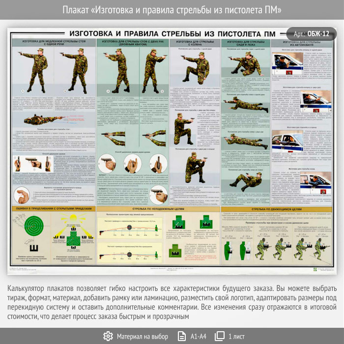 Плакат «Изготовка и правила стрельбы из пистолета ПМ» (ОБЖ-12, 1 лист) в Краснодаре купить