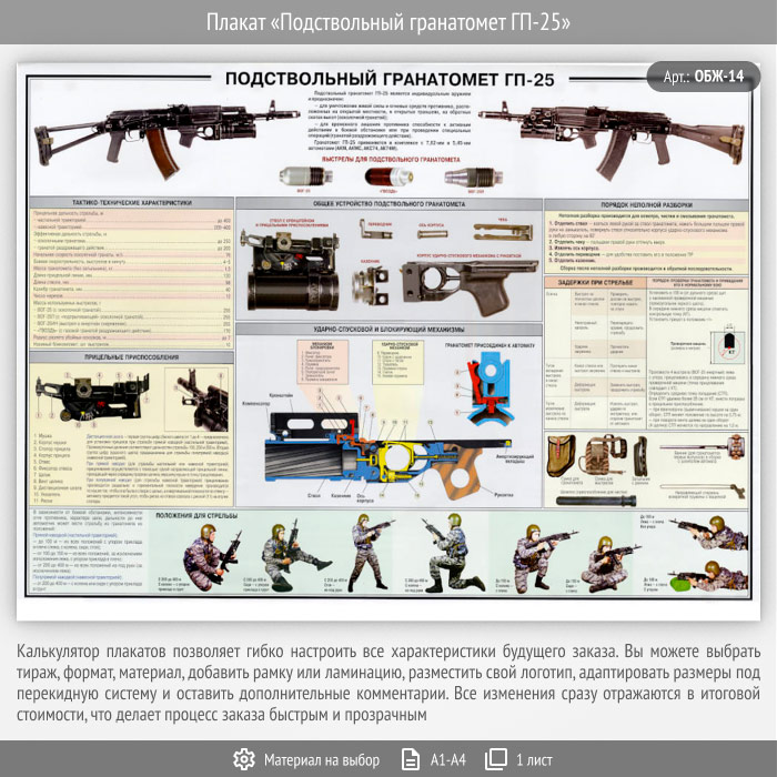Плакат «Подствольный гранатомет ГП-25» (ОБЖ-14, 1 лист) в Краснодаре купить