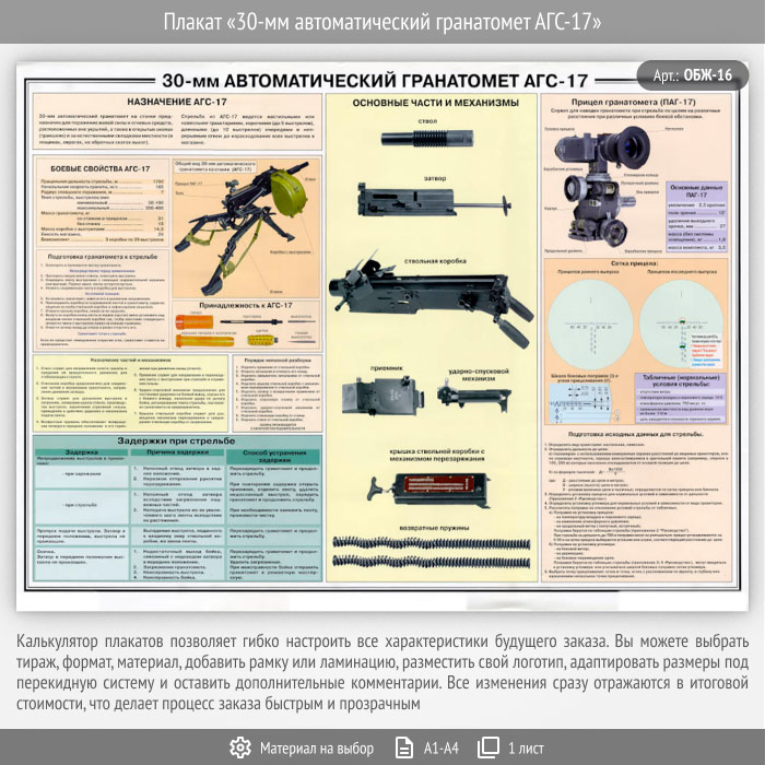 Плакат «30-мм автоматический гранатомет АГС-17» (ОБЖ-16, 1 лист) в Краснодаре купить