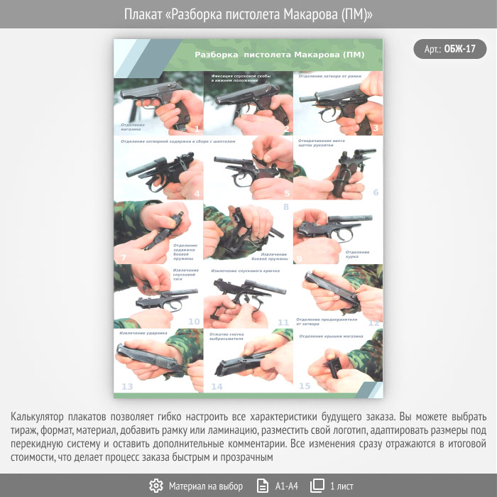 Плакат «Разборка пистолета Макарова (ПМ)» (ОБЖ-17, 1 лист) в Краснодаре купить