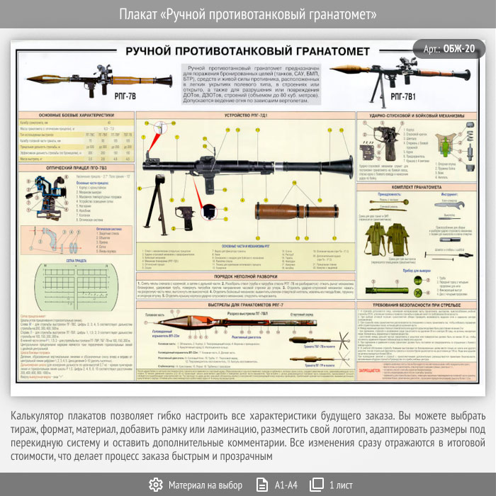 Плакат «Ручной противотанковый гранатомет» (ОБЖ-20, 1 лист) в Краснодаре купить