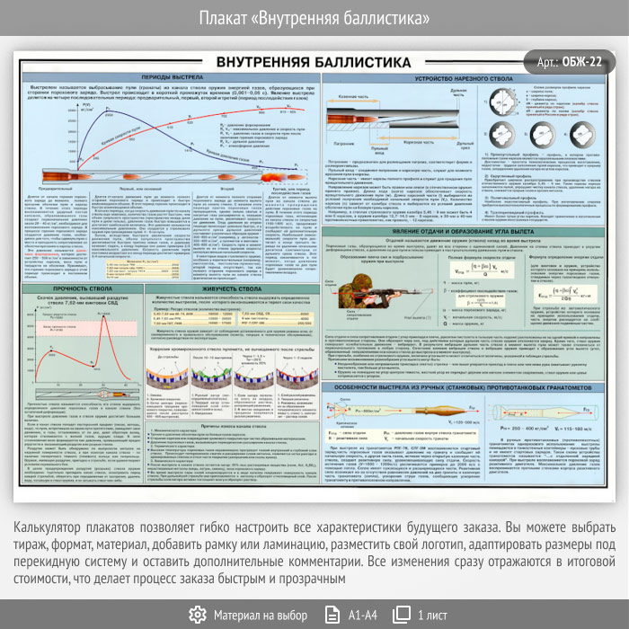 Плакат «Внутренняя баллистика» (ОБЖ-22, 1 лист) в Краснодаре купить