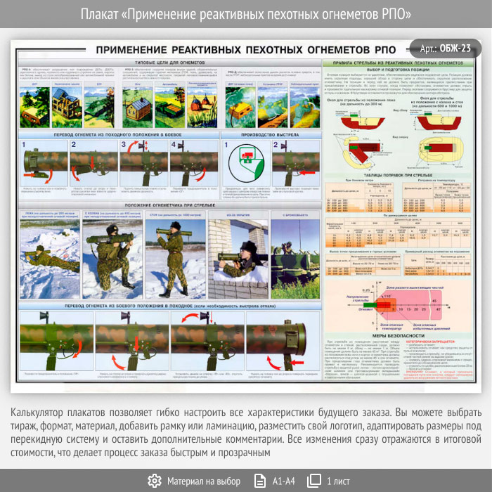 Плакат «Применение реактивных пехотных огнеметов РПО» (ОБЖ-23, 1 лист) в Краснодаре купить