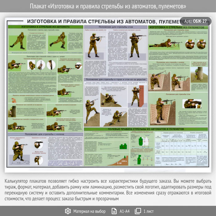 Плакат «Изготовка и правила стрельбы из автоматов, пулеметов» (ОБЖ-27, 1 лист) в Краснодаре купить