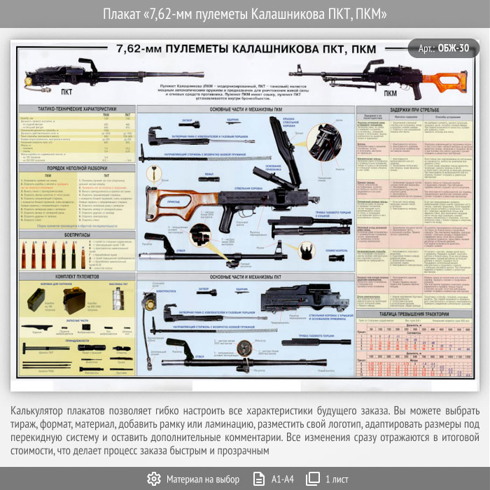 Плакат «7,62-мм пулеметы Калашникова ПКТ, ПКМ» (ОБЖ-30, 1 лист) в Краснодаре купить
