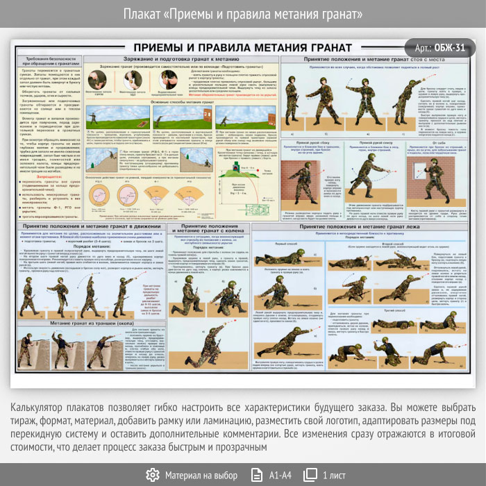 Плакат «Приемы и правила метания гранат» (ОБЖ-31, 1 лист) в Краснодаре купить
