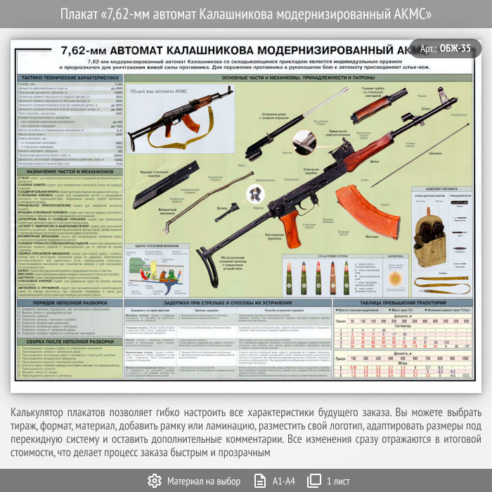 Плакат «7,62-мм автомат Калашникова модернизированный АКМС» (ОБЖ-35, 1 лист) в Краснодаре купить