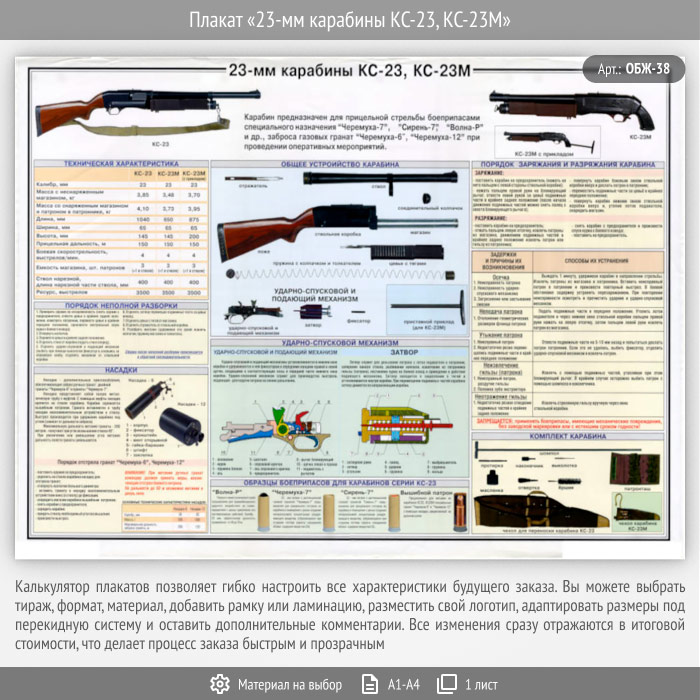 Плакат «23-мм карабины КС-23, КС-23М» (ОБЖ-38, 1 лист) в Краснодаре купить