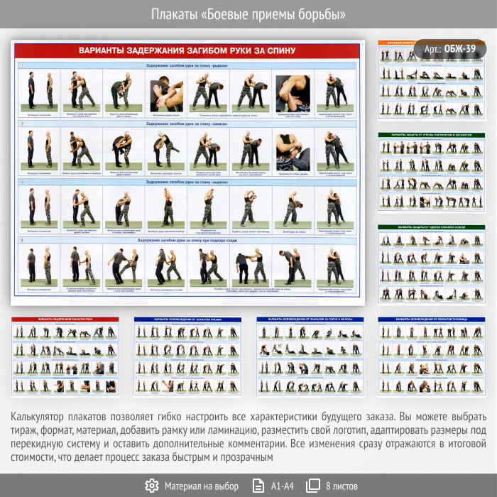 Плакаты «Боевые приемы борьбы» (ОБЖ-39, 8 листа) в Краснодаре купить