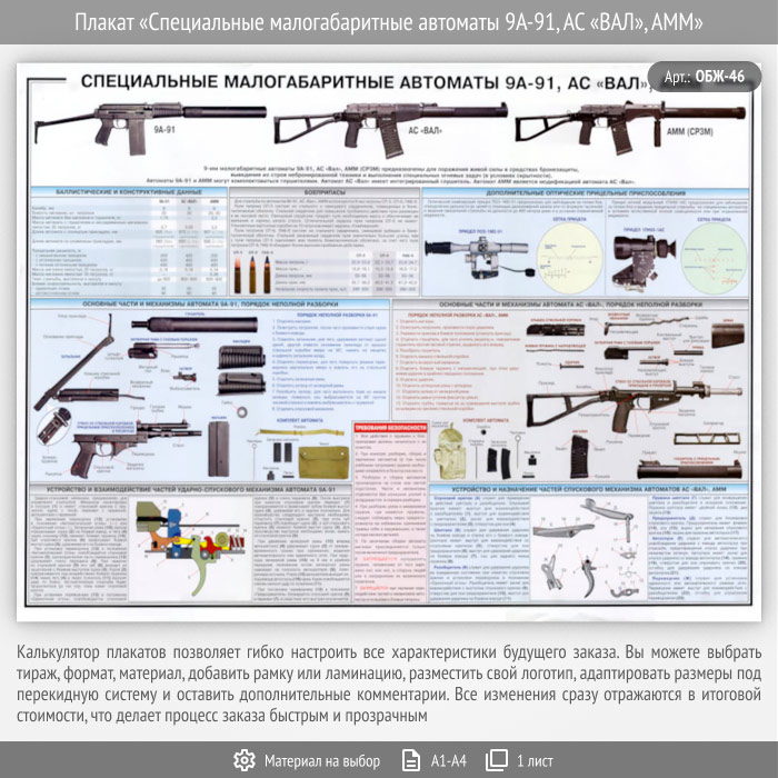 Плакат «Специальные малогабаритные автоматы 9А-91, АС «ВАЛ», АММ» (ОБЖ-46, 1 лист) в Краснодаре купить