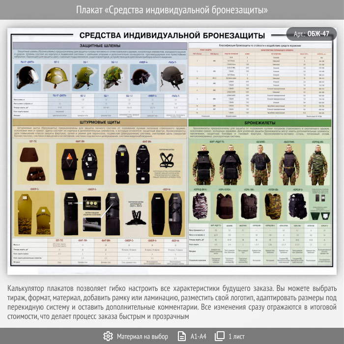 Плакат «Средства индивидуальной бронезащиты» (ОБЖ-47, 1 лист) в Краснодаре купить