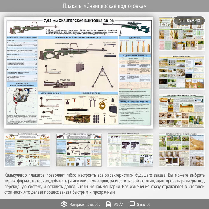 Плакаты «Снайперская подготовка» (ОБЖ-48, 8 листа) в Краснодаре купить