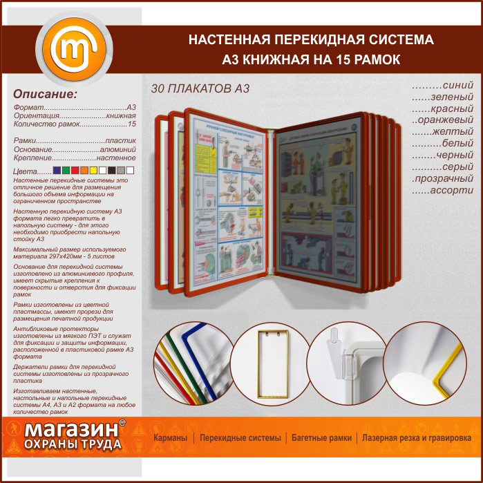 Настенная перекидная система А3 на 15 рамок книжная в Краснодаре купить