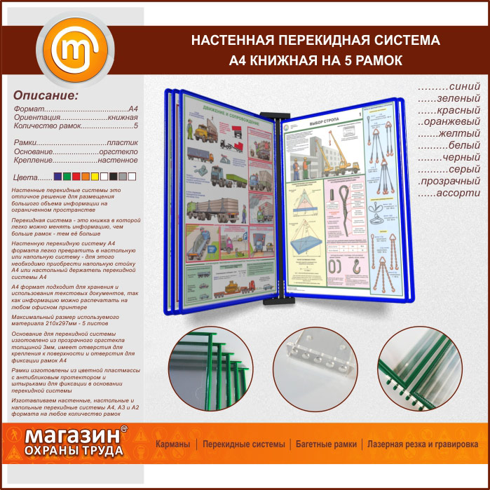 Настенная перекидная система А4 на 5 рамок книжная в Краснодаре купить