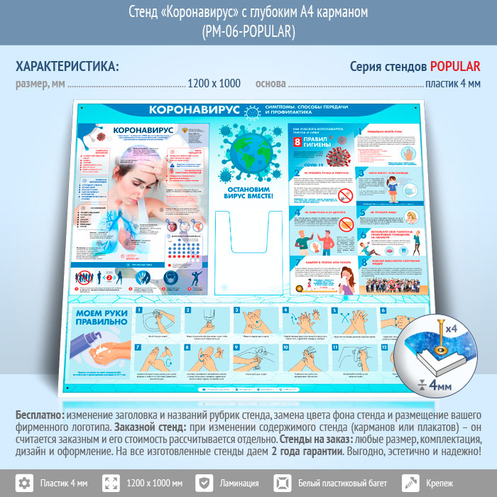 Стенд «Коронавирус» с глубоким А4 карманом (PM-06-POPULAR) в Краснодаре купить