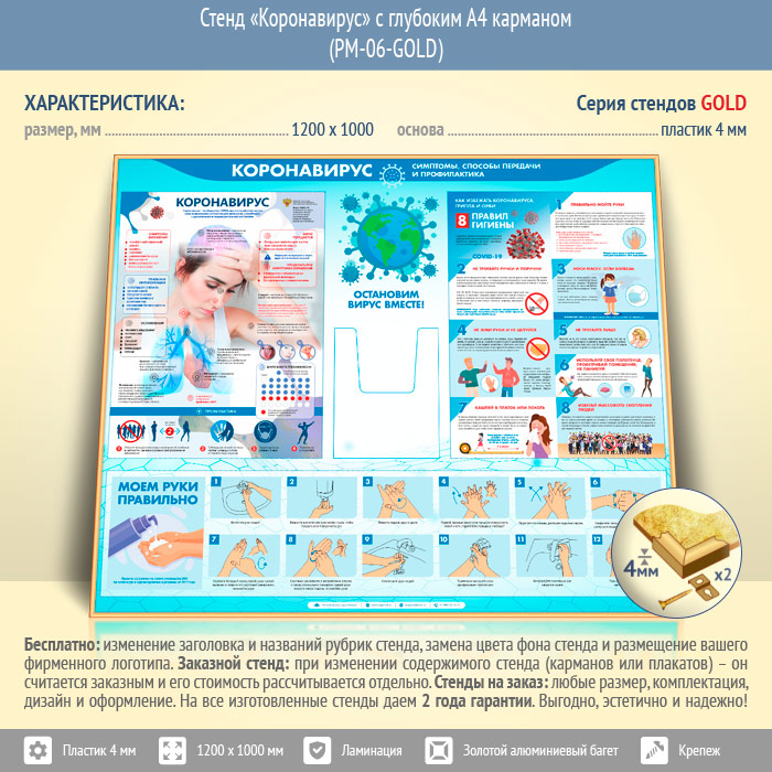 Стенд «Коронавирус» с глубоким А4 карманом (PM-06-GOLD) в Краснодаре купить