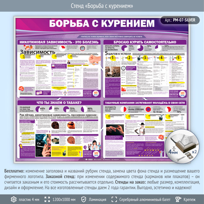 Стенд «Борьба с курением» (PM-07-SILVER) в Краснодаре купить