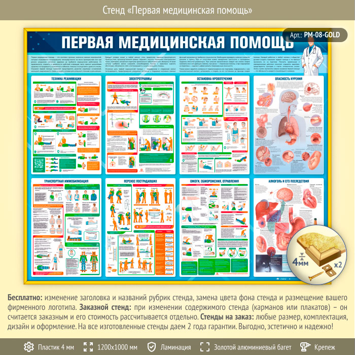 Стенд «Первая медицинская помощь» (PM-08-GOLD) в Краснодаре купить