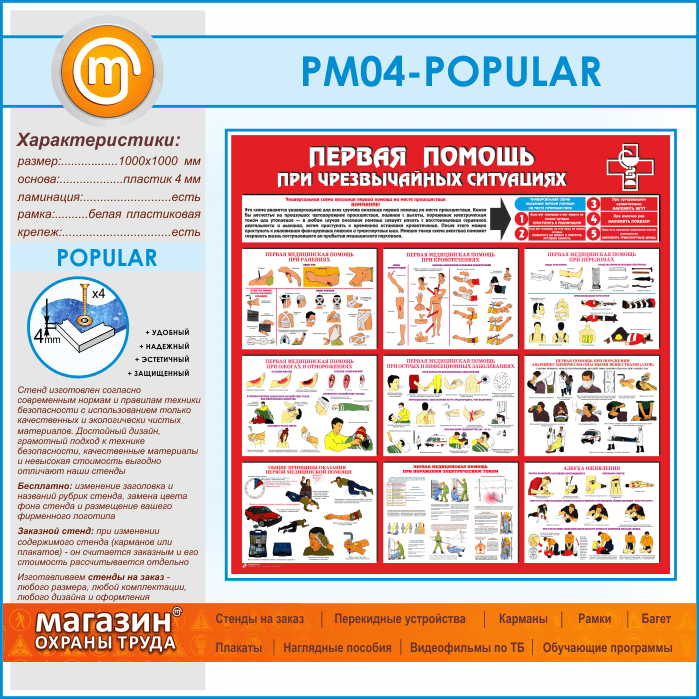Стенд «Первая помощь при чрезвычайных ситуациях» (PM-04-POPULAR) в Краснодаре купить