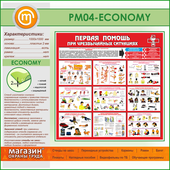 Стенд «Первая помощь при чрезвычайных ситуациях» (PM-04-ECONOMY) в Краснодаре купить