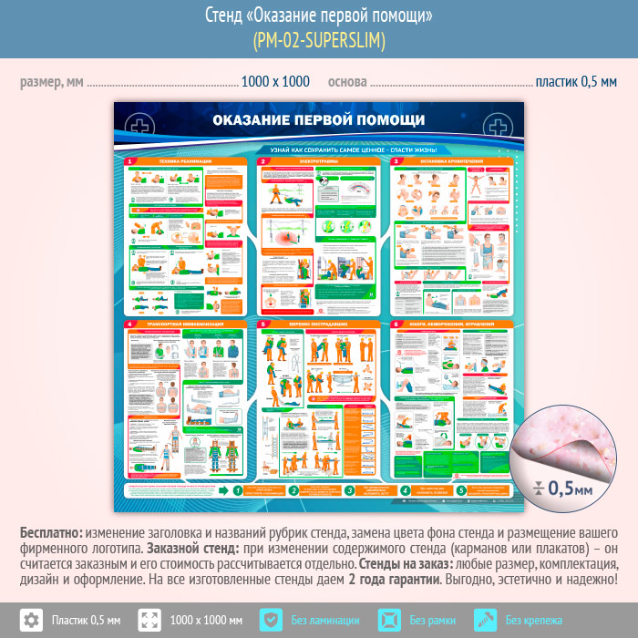 Стенд «Оказание первой помощи» (PM-02-SUPERSLIM) в Краснодаре купить