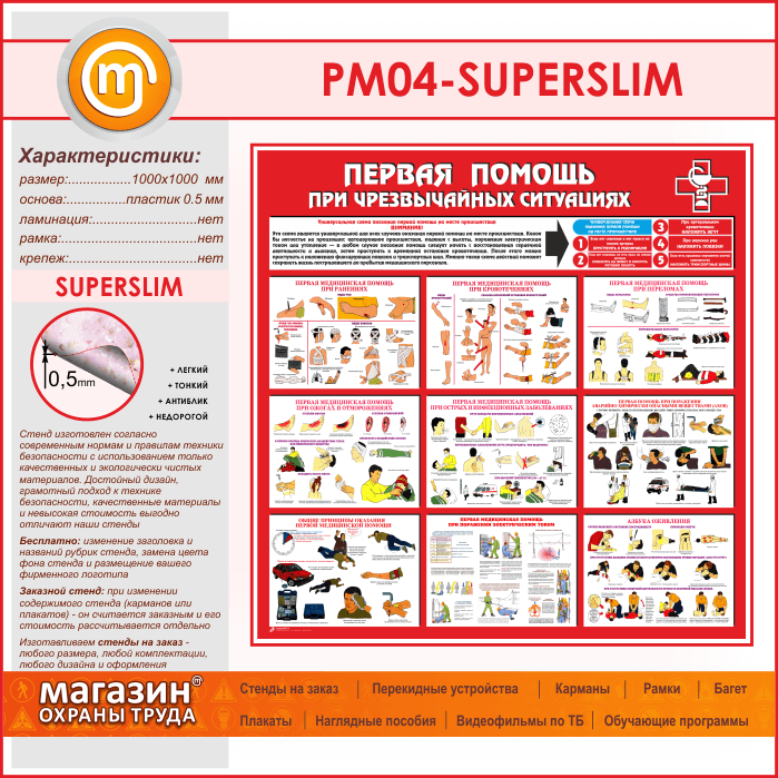 Стенд «Первая помощь при чрезвычайных ситуациях» (PM-04-SUPERSLIM) в Краснодаре купить